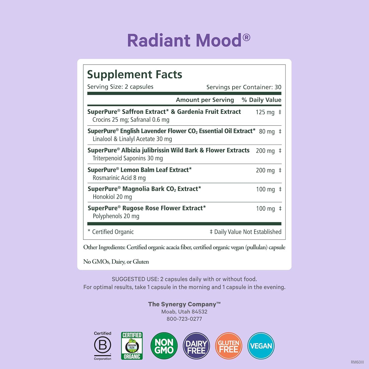 - Proven support from 7 standardized extracts like organic saffron and lemon balm